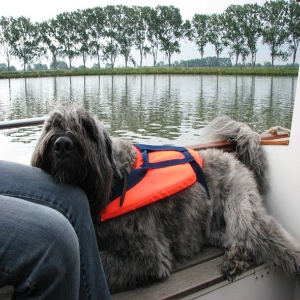 Twan, tijdens het wachten voor de sluis, hij voelt zich een hele piet met zijn nieuwe zwemvest en vindt dat hij ook wel op de bank kan zitten.
