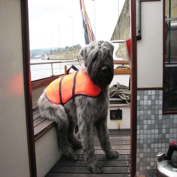 23-7 We vertrekken weer vroeg; 7 uur. Om 11.30 zien we een haventje, vlak voor Dusseldorf, waar we aanmeren. Twan krijgt even de gelegenheid om te doen wat hij moet doen en kan zijn snuffelbehoefte ook even bevredigen. Als ik met Twan over het haventerrein loop valt het mij op dat de haven, of beter, de botenstalling een hoog Willy Wortel gehalte heeft. Er staan een aantal voornamelijk zeilboten op de stalling en twee oudere mannetjes, (ze zullen dus ongeveer van mijn leeftijd zijn) zijn bezig om een zeilboot, op een lorrie over rails, van uit het water met een elektrische lier de helling naar de botenstalling op te trekken. Verder naar boven kan de lorrie dan op een draaiplateau een kwartslag gedraaid worden en dan zijdelings langs de helling geduwd. Daarna komt hij bij een ander spoorlijntje, wordt weer een kwartslag gedraaid en daarna kan hij verder omhoog. Als je de link van het haventje aanklikt, kun je zien, (het is kennelijk winter) dat de boten dan ook in drie rijen liggen. Nadat we daar ook gegeten hebben gaan we verder. Bij Dusseldorf is het even weer erg druk met vracht- en rondvaartboten, en ik hoop dat iemand me kan vertellen waarom de vrachtschepen varen zoals ze varen; ik ben erg benieuwd. Want voor Dusseldorf krijg ik eerst een binnenbocht. De schepen in de opvaart nemen het liefst de binnenbocht, omdat dat korter is , maar vooral omdat daar minder stroming staat. Het zogenaamde blauw varen. In de binnenbocht liggen meestal boeien, - ik houd in principe op de Rijn stroomafwaarts steeds stuurboordswal - daar vaar ik dan vaak achterlangs bij tegenliggers zodat ze geen last van mij hebben. Voor mij is het daar nog diep genoeg. Daarna komt een scherpe buitenbocht voor mij en dan zou je verwachten dat de (geladen) vrachtschepen de (voor hen voor de hand liggende) binnenbocht nemen, maar nee, ook dan tonen ze het blauwe bord en gaan zo dicht mogelijk op de verkeerde oever varen, op een enkeling na, die dus wel de binnenbocht neemt. Ik ga daarom maar naar de linker oever en vaar dáár achter de boeien langs. Dit gedrag ben ik op meer plaatsen op de Rijn tegengekomen. Het lijkt wel of de opvarende schepen altijd de voorkeur hebben voor de verkeerde oever, of dat nu een binnenbocht is of niet. Er is vandaag weer een stevige wind, maar ik voel natuurlijk ook de vaarwind, want als je twaalf tot 15 km/u gaat is die ook niet te verwaarlozen. Om 14.30 meren we aan in de haven van Crefeld, of eigenlijk (sinds 1929) Krefeld maar Yachtclub en haven is nog steeds met een C.