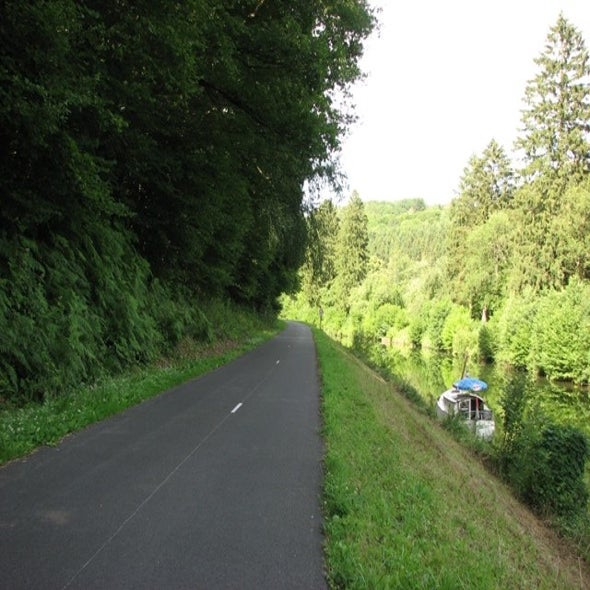 27-6 De bakker vlak bij de haven is dicht en ik fiets half Revin af op zoek naar een bakker, maar uiteindelijk moet ik mijn brood bij de supermarkt vlak bij de haven halen die pas om negen uur open gaat. Later op de morgen doe ik nog wat meer boodschappen in de supermarkt en gooi de jerrycans weer vol diesel bij de pomp van de supermarkt. We vertrekken om twaalf uur en na anderhalf uur meren we aan na sluis 48 in de schaduw van de bomen want het is inmiddels 30 graden. We eten daar en gaan na een uur verder. Om 16.30 meren we aan in het wild bij pk 57, ook weer lekker in de schaduw.