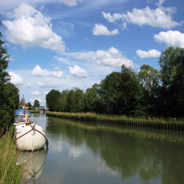 19-6 Vanmorgen zijn er zware buien met veel wind, dus een goeie reden om geen haast te maken en lekker wat te lezen, maar als het om 1 uur wat beter weer geworden is gooien we toch de trossen los om het laatste stuk IJssel te varen. Halfweg het Pannerdenskanaal ga ik bakboord uit naar het Gat van Moorlag waar ik gelijk aan de grond loop. Met volgas achteruit en met behulp van de vaarboom kom ik weer los en houd daarna wat meer de stuurboordkant van de invaaropening aan. We meren aan in de haven van W.s.v. Loowaard. Twan wordt hier bij het uitlaten helemaal gek, want het stikt er van de konijnen en de dijk wordt ook nog begraast door paarden en koeien. Het is een fijne haven op een rustige plek en er is op de hele haven niemand te bekennen. Het liggeld, (in ons geval 5 euro) kun je in een afgesloten kistje met gleuf doen en dat doe ik dus ook.