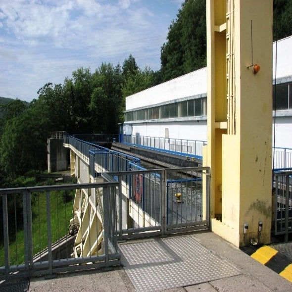 Daarna krijg je een scheepslift die 17 sluizen vervangt. Je vaart in een bak met water, die daarna over rails van een helling rolt, en beneden vaar je er weer uit; ruim 44,5 meter lager.