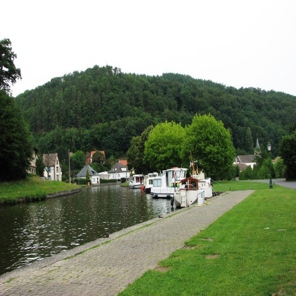 26-6 Vandaag vertrekken we om 9.15 en willen 13 km verder in Fumay aanmeren om de plaats even in te gaan en dan meteen brood te kopen, maar er blijkt een grote viswedstrijd te zijn met markt en allerlei feestelijkheden en kennelijk hebben ze de hele aanlegsteiger ook afgehuurd c.q. in beslag genomen want er kan niet afgemeerd worden, dus dan maar doorvaren. De volgende plaats is Revin. Daar hebben we eerst nog een sluis met een sluiswachter en direct daarna een tunnel. Vorig jaar hadden we daar een verschil van mening met de sluiswachter. Hij beweerde toen, dat we door rood licht waren gevaren en wij wisten zeker dat hij groen was. Martha had niet door dat we bij die sluis waren en ik heb maar niks gezegd. Ze had nu een foto willen maken van het verkeerslicht bij de tunnel, zodat we bewijs hadden dat we met groen licht de tunnel in gevaren waren. Om 14.00 uur meren we aan in de haven van Revin.