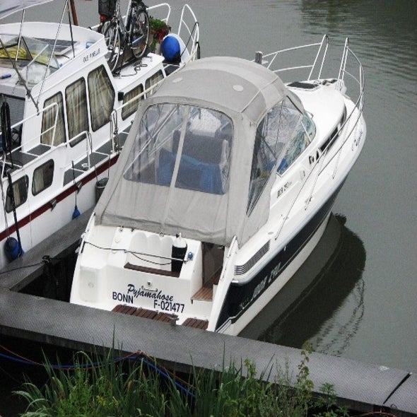 Op de Rijn, met de stroom mee loopt de snelheid op naar 14 à 15 km/uur. Als we bij km 618 zijn vinden we in een afgedamd stuk Rijn een plek aan een ponton waar Twan even op de kant kan. Als we om 14.30 bij Mondorf zijn meren we daar in de haven aan en kan Twan weer even de benen strekken en kunnen wij eten. Vanmorgen was het wisselend bewolkt en lekker weer, maar 's middags komt er meer bewolking en een stevige frisse wind bij 20 graden. Na drie kwartier gaan we verder. Als we om 16.45, vlak voor Keulen bij Porz zijn vinden we het mooi geweest voor vandaag en meren we daar aan in de haven om te overnachten. We vragen of er in de buurt een bakker of een supermarkt is en in Zündorf, op een paar honderd meter vanaf de haven is een supermarkt, waar we met zijn drieën heen wandelen. Zündorf blijkt een leuk plaatsje.